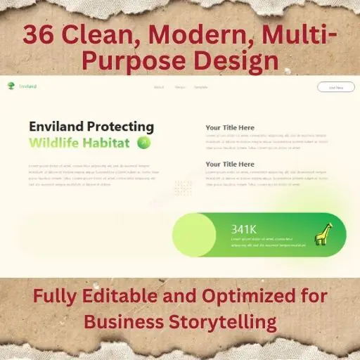Enviland is a premium Environment & Ecology presentation template designed for brands, startups, NGOs, educators, and businesses that want to communicate sustainability, impact, and responsibility with clarity and authority.