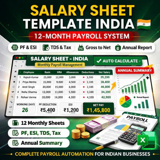 The Salary Sheet Template for India is a structured 12-month payroll processing system built in Excel (.XLSM format) specifically for Indian businesses.