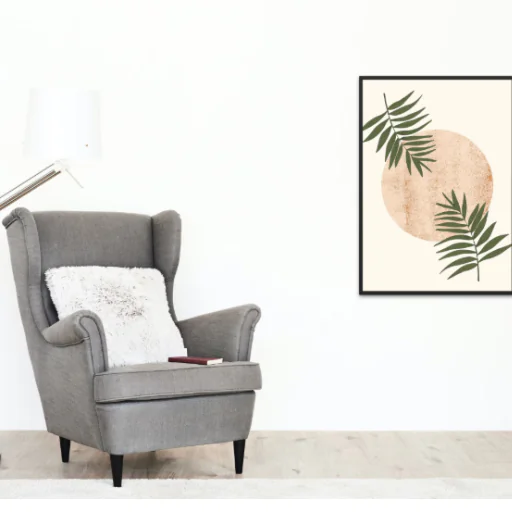 Beige Minimalist Sunrise and Leaf Canvas Print With 5 Different Sizes Wall Art, Home Décor Wall Art For Living Room, Printable Home Wall Art